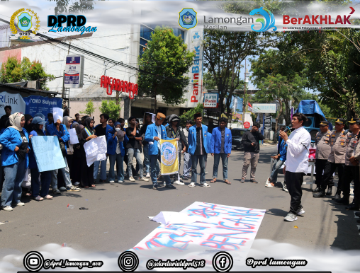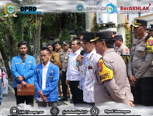 beserta Anggota DPRD lainnya menemui masa aksi dari Pergerakan Mahasiswa Islam Indonesia Lamongan di depan Kantor DPRD Lamongan, masa tersebut menyuarakan aksinya terkait penanganan banjir kabupaten lamongan,